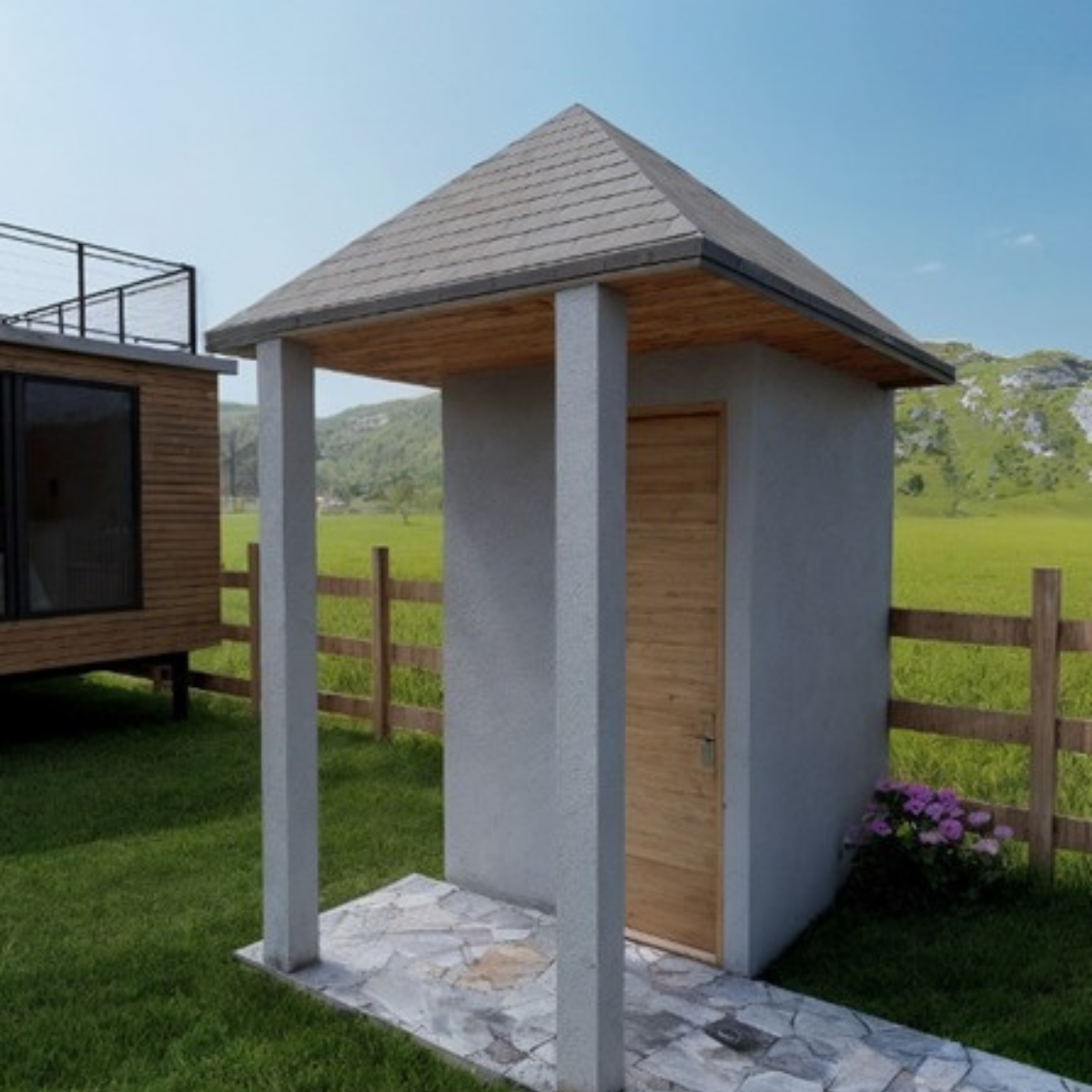 Con un diseño compacto y altamente versátil, este medio baño se integra sin dificultad en patios, jardines, eventos al aire libre o zonas recreativas. Gracias a su estructura, ocupa un espacio reducido mientras proporciona una experiencia cómoda y funcional. Además, el diseño asegura durabilidad frente a las condiciones ambientales más exigentes.
